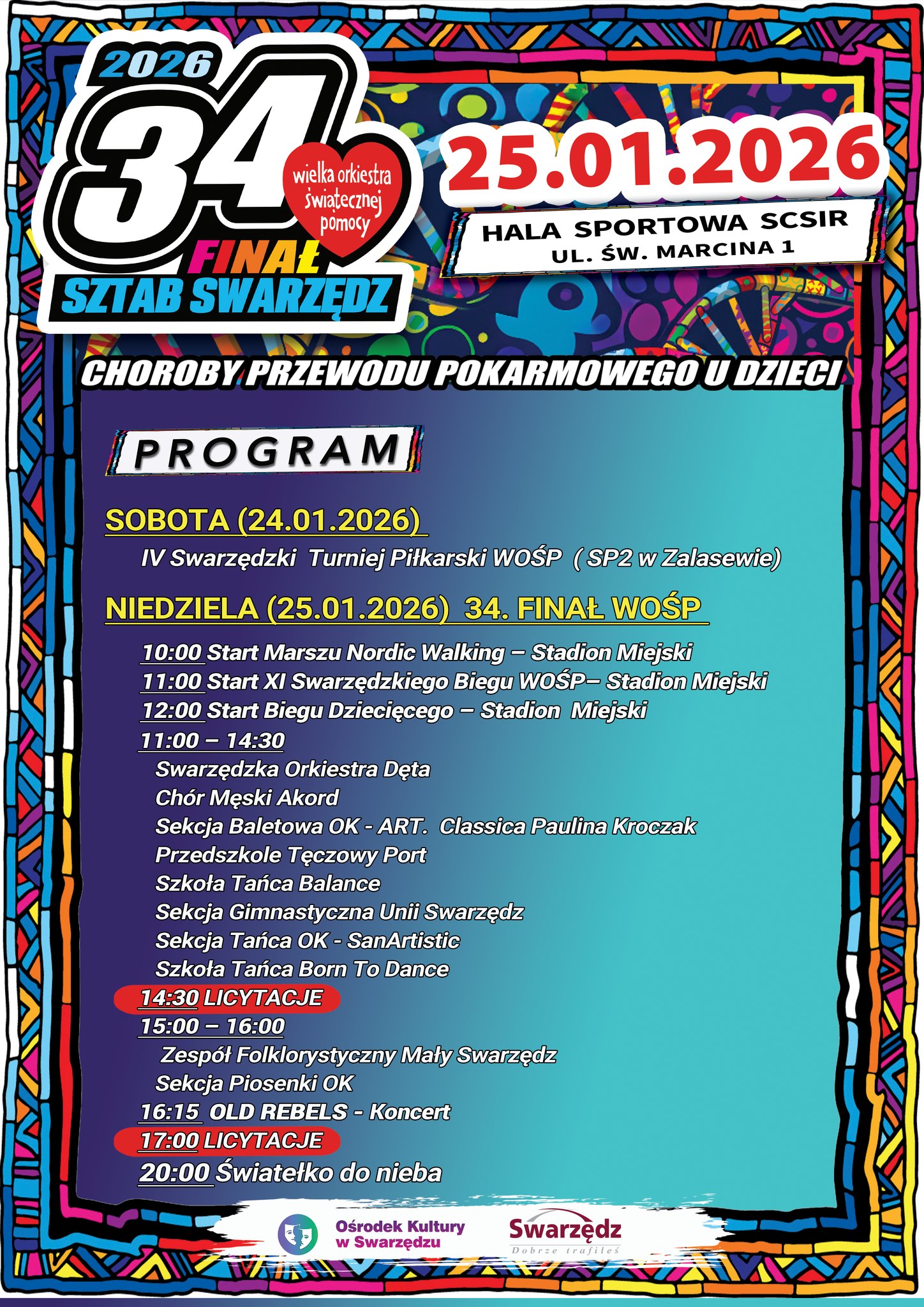 34 Finał Wielkiej Orkiestry Świątecznej Pomocy już w niedzielę 25 stycznia od godz. 10:00. Zapraszamy do Hali Sportowej przy ul. Św.Marcina 1 w Swarzędzu.