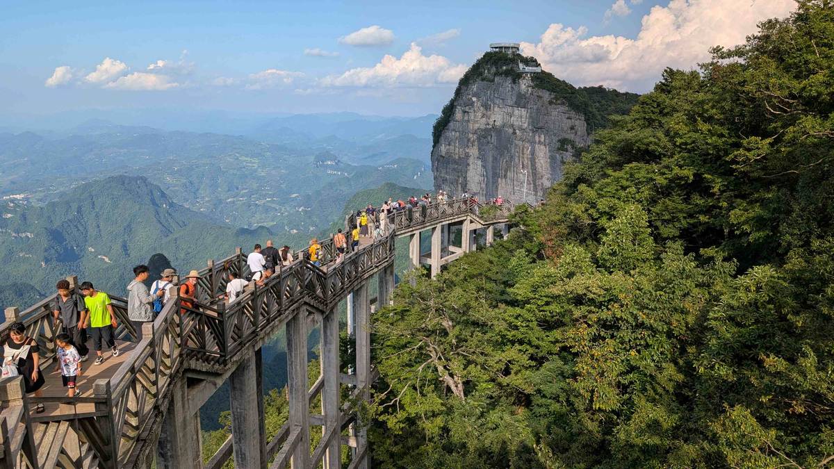 Niewiele trzeba włożyć wysiłku fizycznego, żeby przechadzać się po szczycie góry szklanymi kładkami przytwierdzonymi do skał z widokiem na przepaść pod stopami. Jedyny mankament: trzeba odstać (długo) w kolejce, żeby dostać się na szczyt i niestety zwiedzać wraz z tłumem głośnych chińskich turystów. Kiedy jednak widzisz te cuda natury, to wszystko dookoła staje się mało ważne.