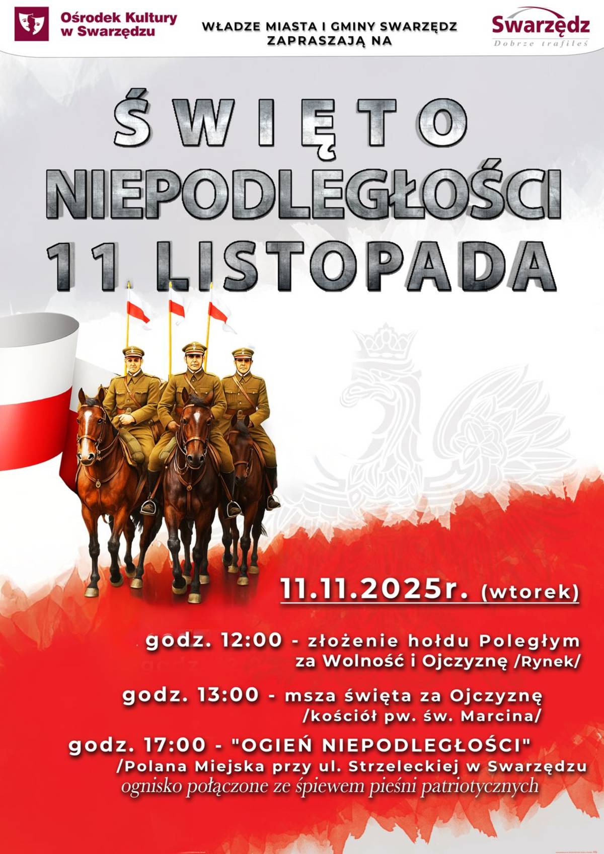 - 12:00 - złożenie kwiatów przy pomniku „Poległym za Wolność i Ojczyznę" na swarzędzkim Rynku,