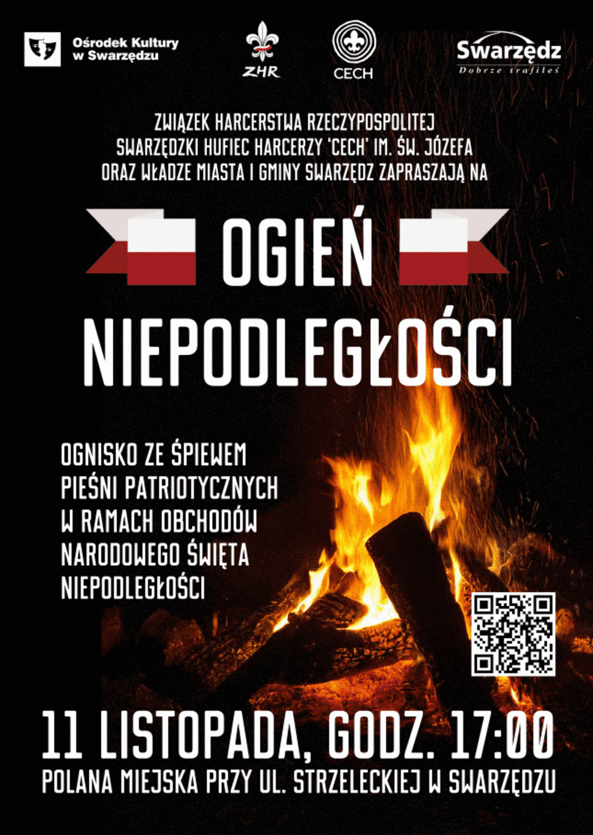 - 17:00 - „Ogień Niepodległości" - ognisko z pieśniami patriotycznymi na Polanie Miejskiej przy ul. Strzeleckiej.