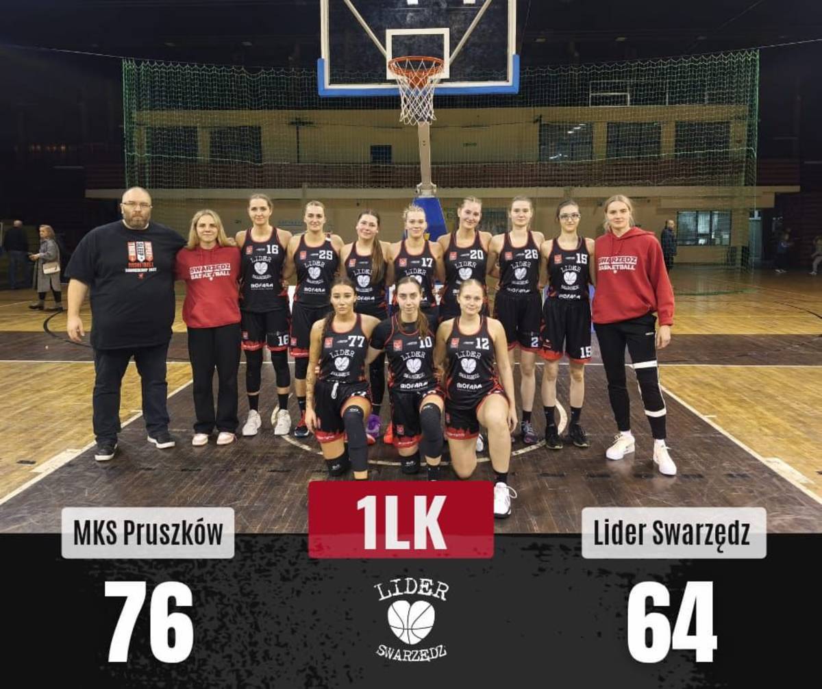 Bardzo trudne warunki postawił seniorki Lidera Swarzędz jednemu z faworytów 1LK. W sobotę w Pruszkowie osłabione swarzędzanki rywalizowały jak równy z równym z zespołem MKS Pruszków, który jest kandydatem do awansu do Ekstraklasy. Drużyna trenera Tomasza Eicherta jest mocno osłabiona. W Łodzi w meczu z ŁKS kontuzji zerwania wiązadła ACL w kolanie uległa Kamila Rogulska, która kapitalnie spisywała się w tym sezonie podwajając swoje średnie do 13 pkt i 13,3 zbiórki na mecz. W tym sezonie nie ujrzymy także kapitan zespołu Magdy Wojdalskiej, która musi poddać się operacji kolana. Mimo tych przeciwności Liderki przystąpiły do meczu z faworytem z wolą zwycięstwa. Początek to przewaga gospodyń, które odskoczyły na 10 punktów, ale zryw swarzędzanek na koniec pierwszej odsłony doprowadził do wyniku 18:17 dla miejscowych. Druga kwarta to kapitalna gra Liderek, które grały szybko i pomysłowo. Celne trójki Wiktorii Piotrowskiej i Magdy Pisery, skuteczna gra pod koszem Magdy Ratajczak i dobra zmiana Leny Olejnik pozwoliły na objęcie prowadzenia 39:35 do przerwy. Niestety w trzeciej kwarcie rywalki zanotowały szalone 6 celnych trójek na 9 rzutów i to one prowadziły 61:54. W czwartej kwarcie powiększyły przewagę do 10 punktów i utrzymywała się ona aż do końcowego gwizdka. Ostateczny wynik to 76:64, ale miejscowe zawodniczki musiały się bardzo napracować, żeby wyrwać zwycięstwo. Liderki grały w składzie: Szuba 5, Piotrowska 13 (3x3), Stachowiak DNP, Kosińska DNP, Ratajczak 23 (1x3) + 17 zbiórek double-double, Pisera 7 (1x3) + 5 asyst, Bartczak 6, Urbaniak 3 (1x3), Olejnik 2, Błaszczak 5.